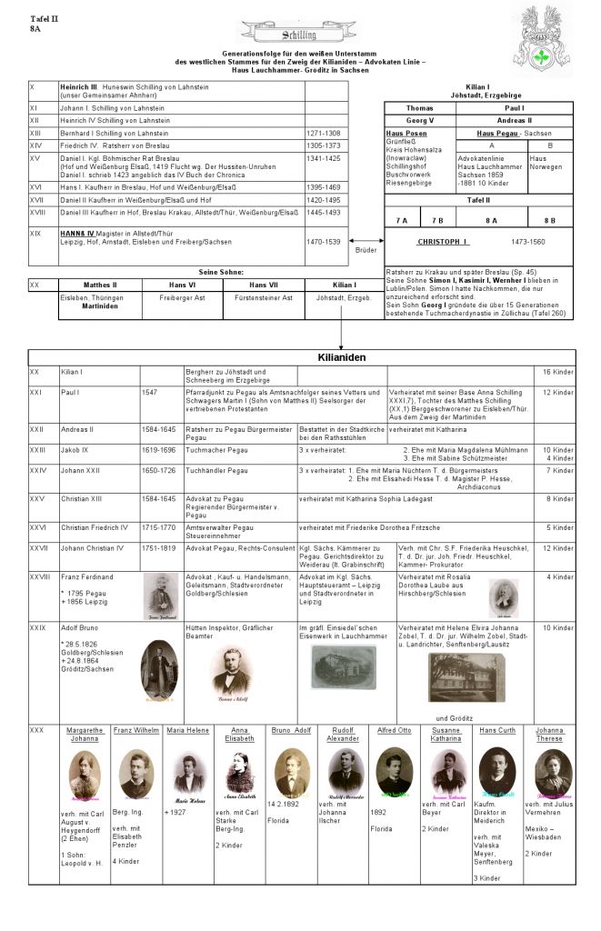 Hanß IV’s son Kilian I (1512 to 1561) was the ancestor of the Kilianides. They founded various lines in Saxony (for instance the Pegau line and the Lauchhammer line) and Grünfließ/Posen.